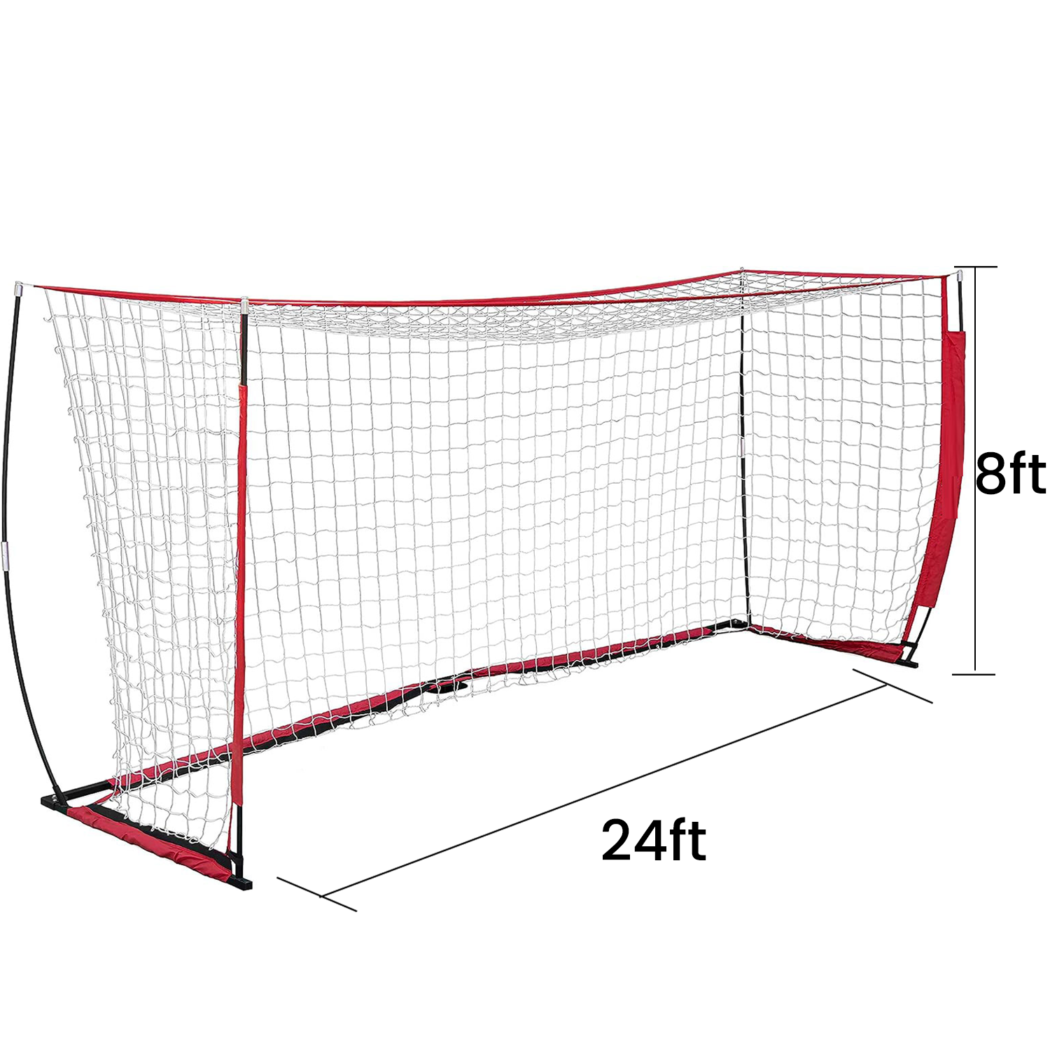 We’ve tested them and without staking them down they do not fall over when kicking with all your might.